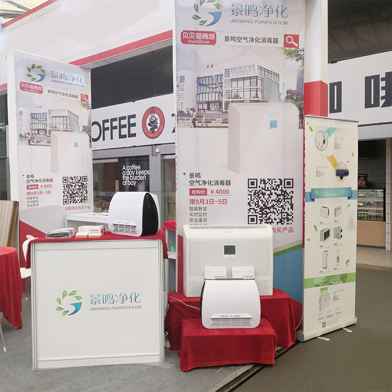 2019年9月3日到5日,我司景鳴凈化科技(杭州)有限公司應(yīng)貝貝貓空調(diào)商城的邀請(qǐng)參加了Ish 上海暖通展。在此次會(huì)議上,景鳴攜本司經(jīng)典暢銷產(chǎn)品與諸多新品亮相,其中有專為醫(yī)院設(shè)計(jì)的空氣消毒設(shè)備,專為家庭設(shè)計(jì)的桌面式空氣凈化器,新風(fēng)消毒系統(tǒng)和熱交換機(jī),等等。